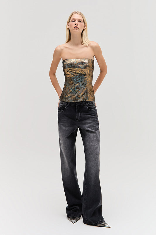 TOP CORSET A FIO TOMARA QUE CAIA PATOU HEAVY PRETO