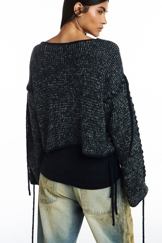 TRICOT DETALHES AMARRAÇÕES PRETO MESCLADO