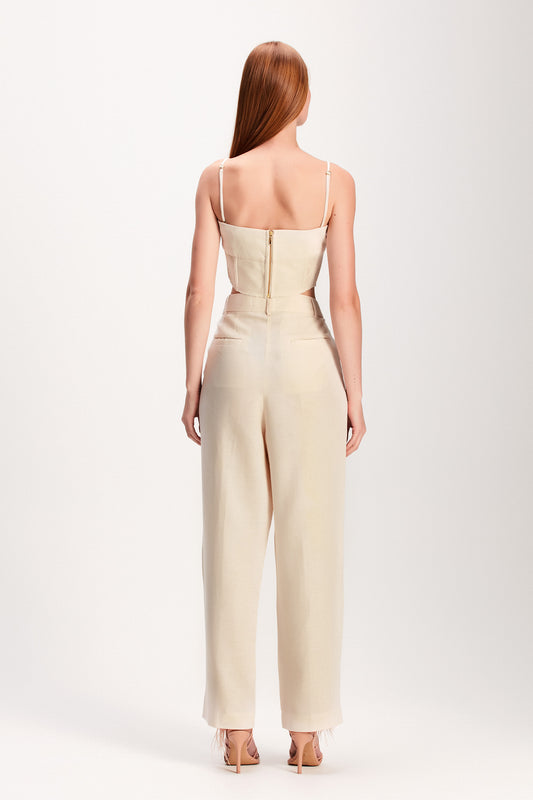 EsgotadoTOP LINHO RECORTES LASTEX AREIA