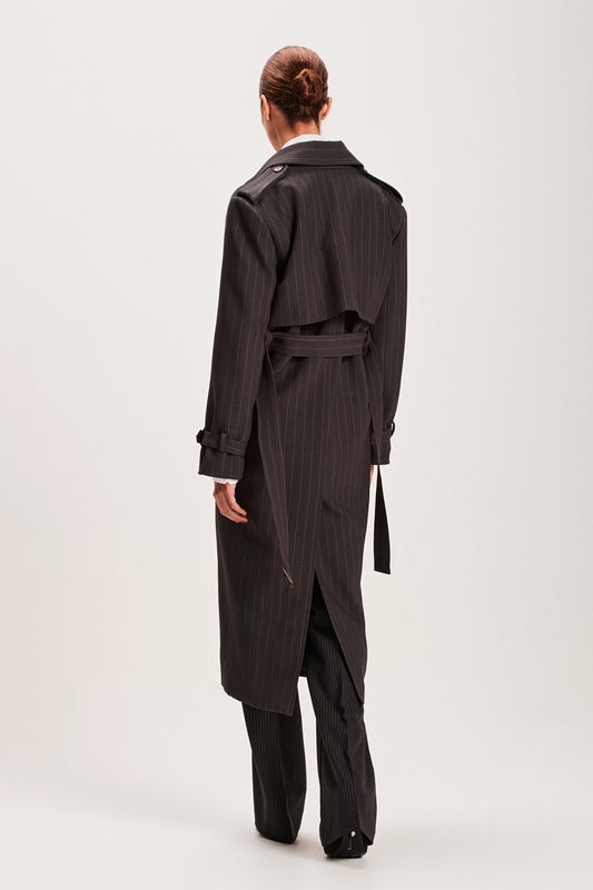 EsgotadoTRENCH COAT RISCA DE GIZ PRETO