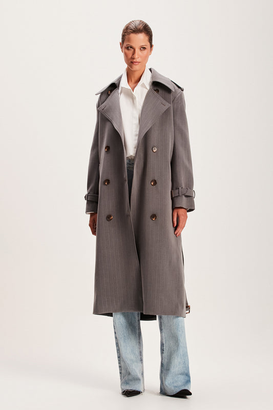EsgotadoTRENCH COAT RISCA DE GIZ CINZA