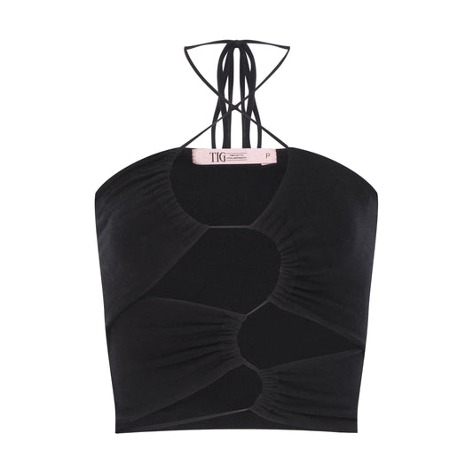 EsgotadoTOP TOMARA QUE CAIA DRAPEADO GEORGETE POÁ PRETO
