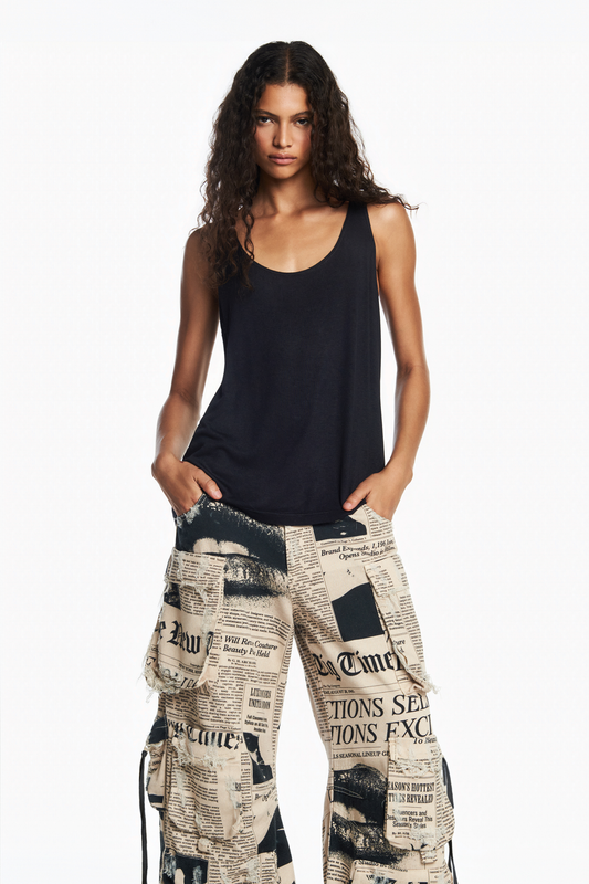 CALÇA RECORTES FAIXAS SARJA PRETA