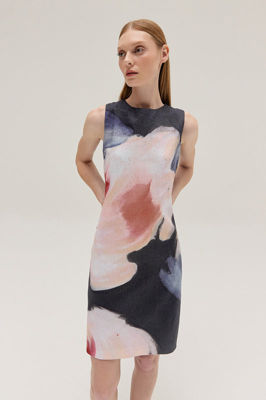 SaleVESTIDO TUBO LINHO FLORAL PIXEL AZUL