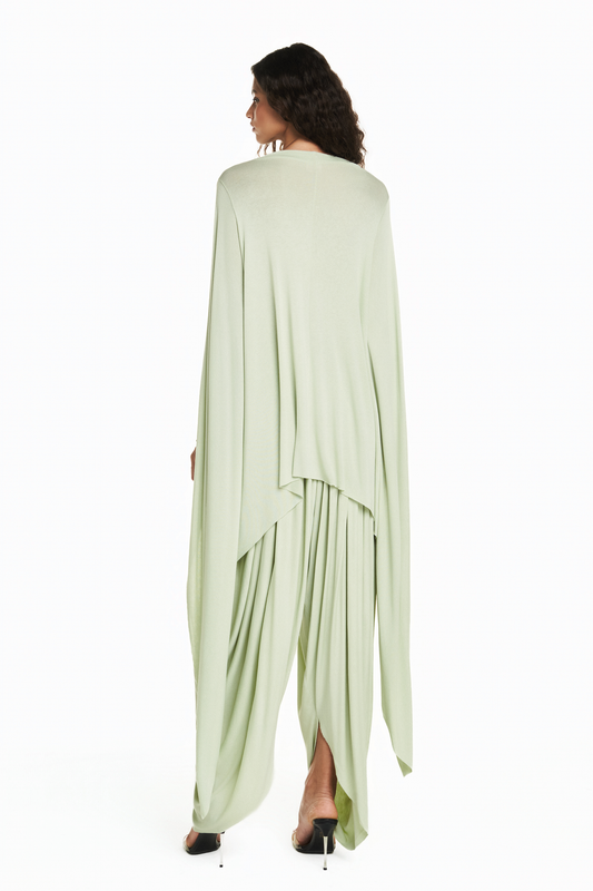 CALÇA PALA DRAPEADA PERNA AMPLA MALHA VERDE CLARA