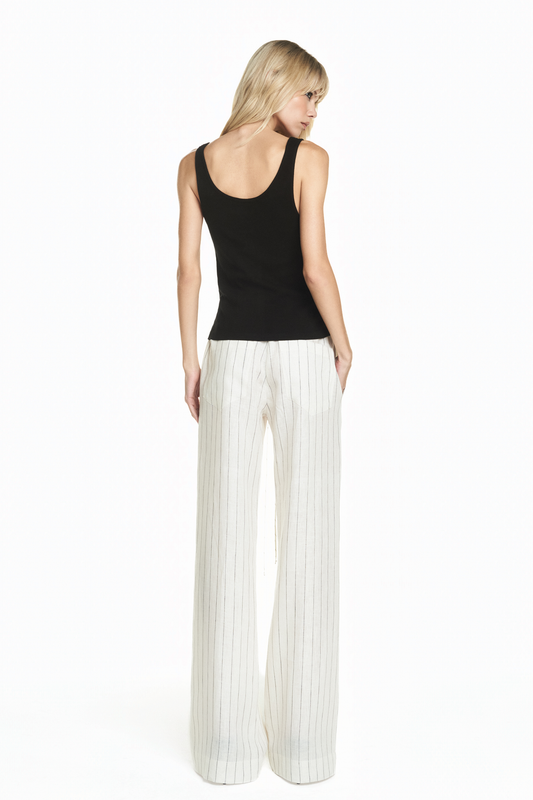 CALÇA ELÁSTICO CÓS LINHO LISTRADO OFF WHITE