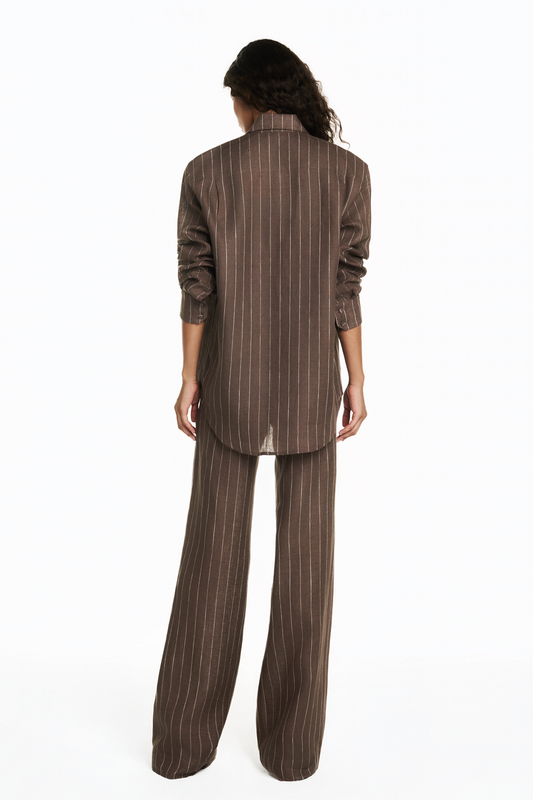 CAMISA LINHO LISTRADO MARROM