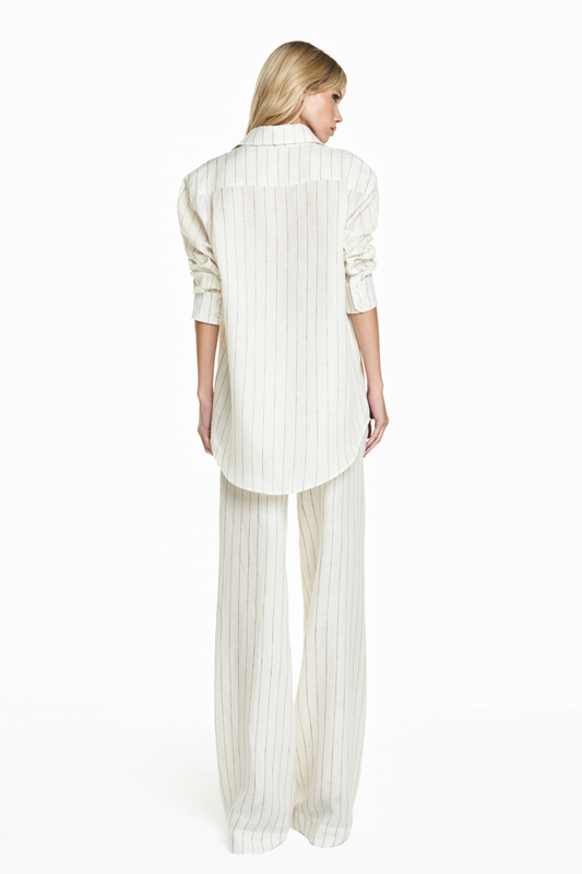 CAMISA LINHO LISTRADO OFF WHITE