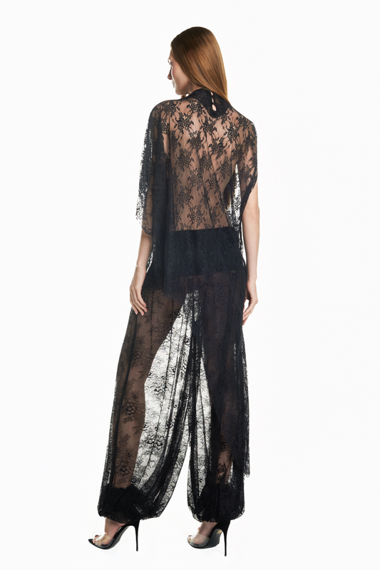 BLUSA KAFTAN ASSIMÉTRICA RENDA PRETA