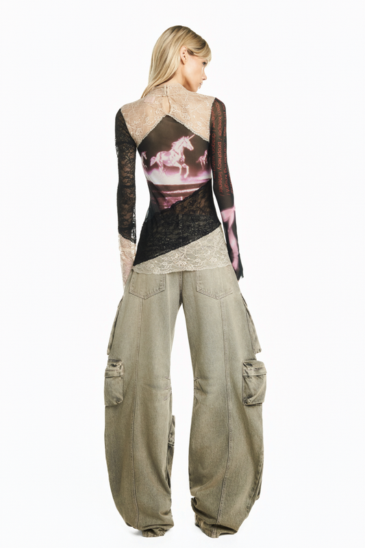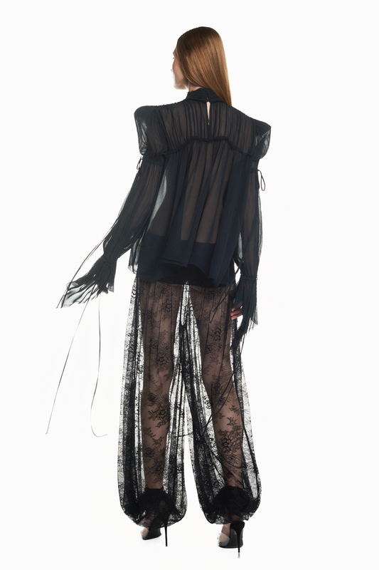 BLUSA MANGA LONGA GOLA ALTA TULE E RENDA PEGASUS