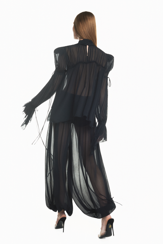 BATA MANGA LONGA PALA DRAPEADA CHIFFON PRETO