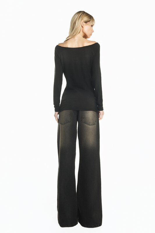 CALÇA JEANS DIRTY BLACK FLARE CINTURA BAIXA