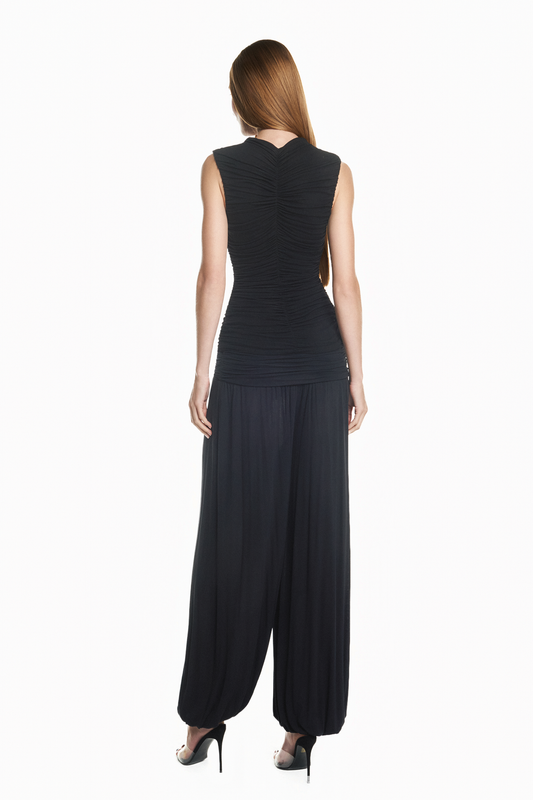BLUSA DRAPEADA SEM MANGA MALHA PRETA