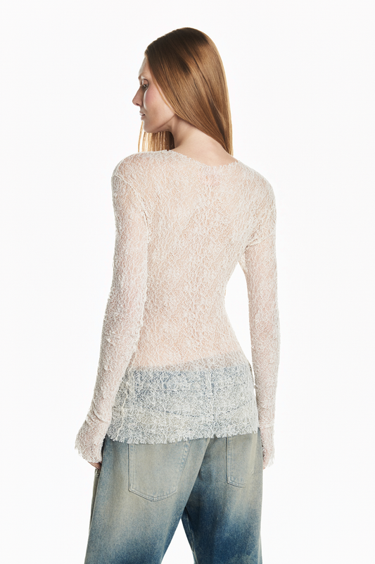 BLUSA MANGA LONGA RENDA AREIA