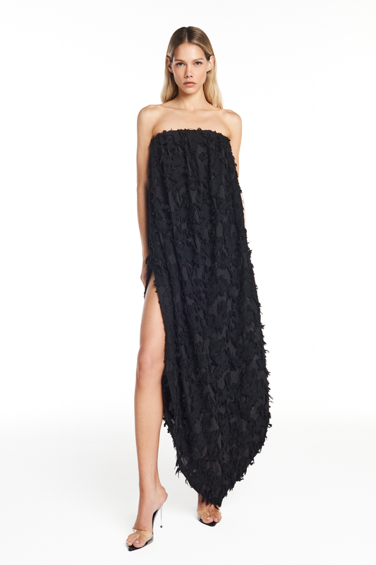 VESTIDO TOMARA QUE CAIA LONGO ASSIMÉTRICO ALGODÃO DEVORÊ PRETO