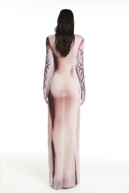 VESTIDO LONGO MANGA LONGA TULE TRIBAL ONE LOVE