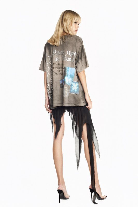 MINI SAIA DRAPEADA TULE ESTAMPA RENDA