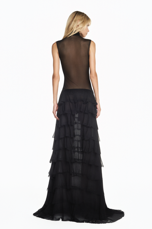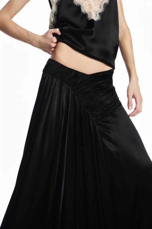 SAIA LONGA DRAPEADO FRONTAL CETIM PRETO