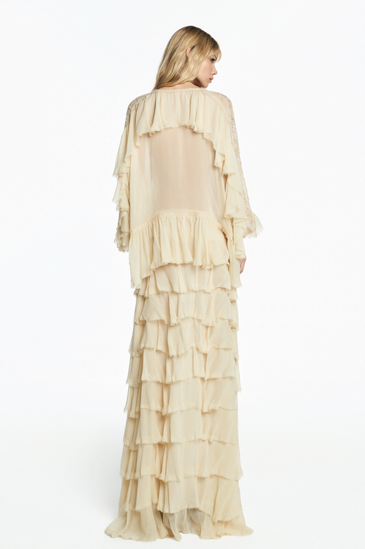 SAIA LONGA BABADOS CHIFFON MANTEIGA