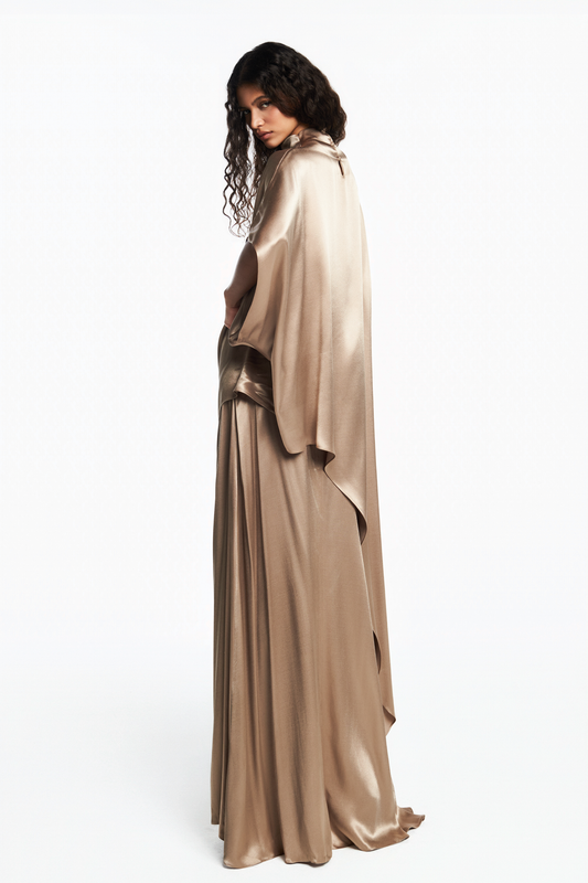 SAIA LONGA DRAPEADO FRONTAL CETIM BEGE
