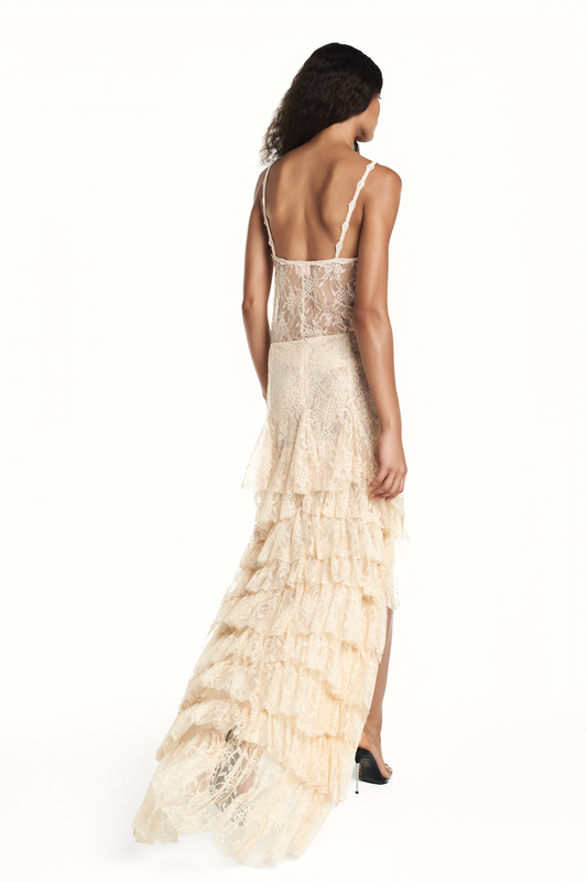 SAIA LONGA PALA DRAPEADA RENDA BEGE