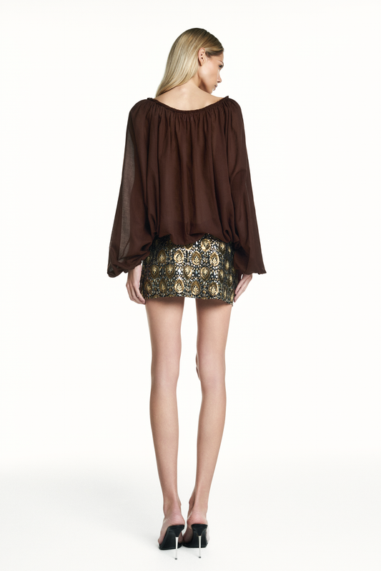 MINI SAIA DRAPEADA METAIS TULE MARROM