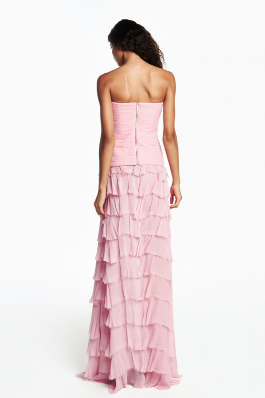 SAIA LONGA BABADOS CHIFFON ROSA