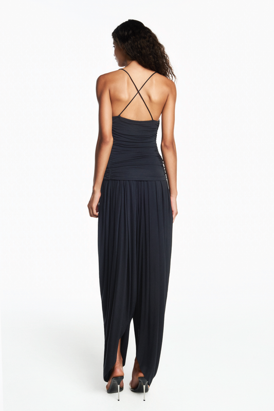 REGATA ALÇA CORPO DRAPEADO MALHA PRETA
