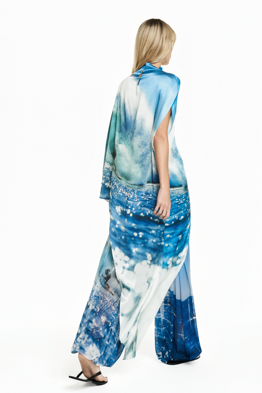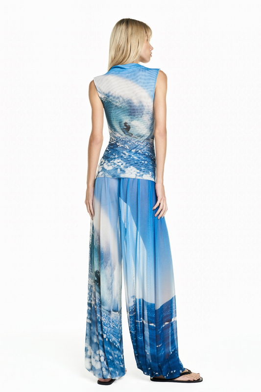 CALÇA PALA DRAPEADA ELÁSTICO BARRA TULE SURF AZUL