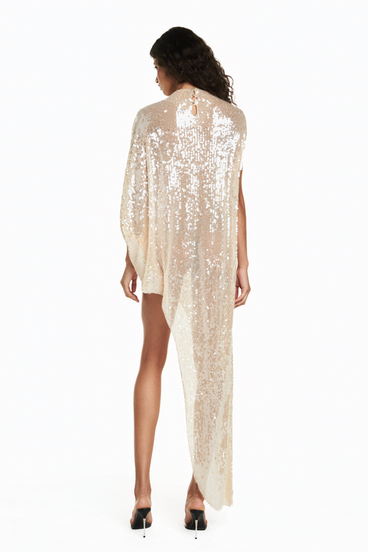 BLUSA KAFTAN ASSIMÉTRICA PAETÊ CREME
