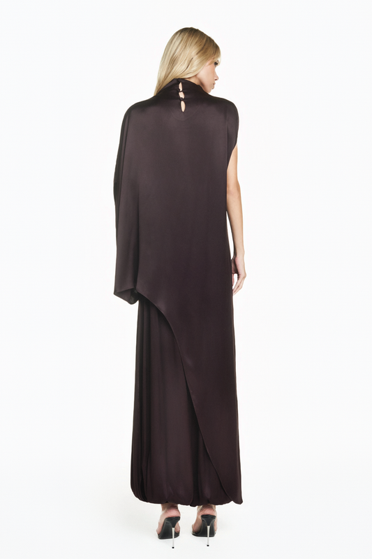 BLUSA KAFTAN ASSIMÉTRICA CETIM MARROM