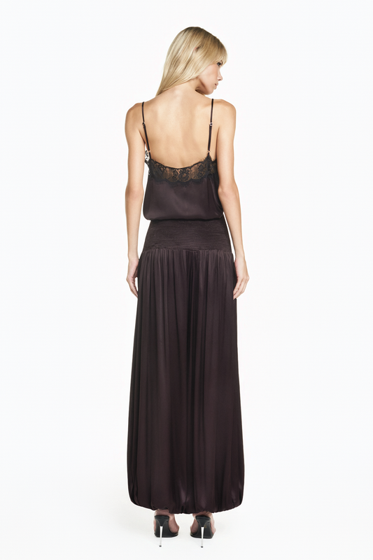 VESTIDO TOMARA QUE CAIA TORCIDO CETIM MARROM