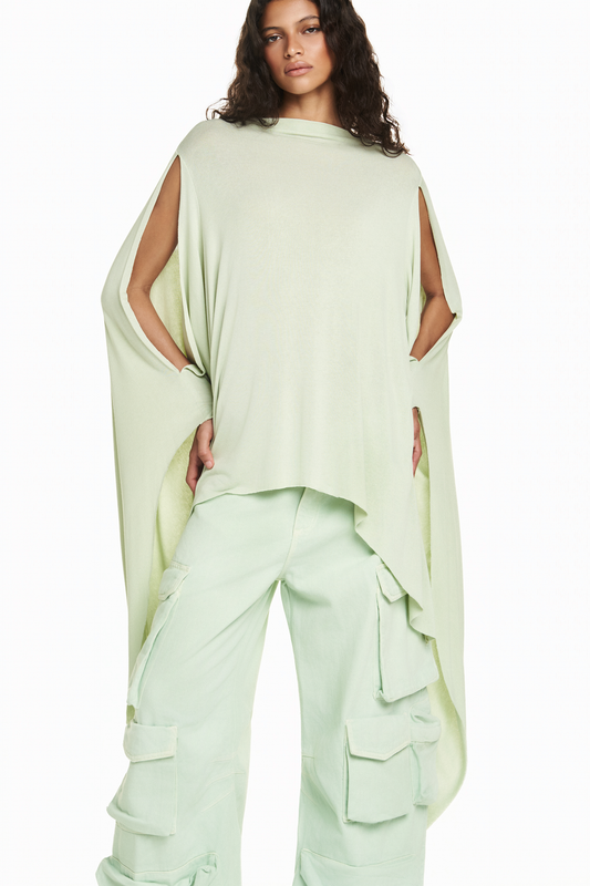 BLUSA AMPLA MANGA COM PONTA MALHA VERDE CLARA