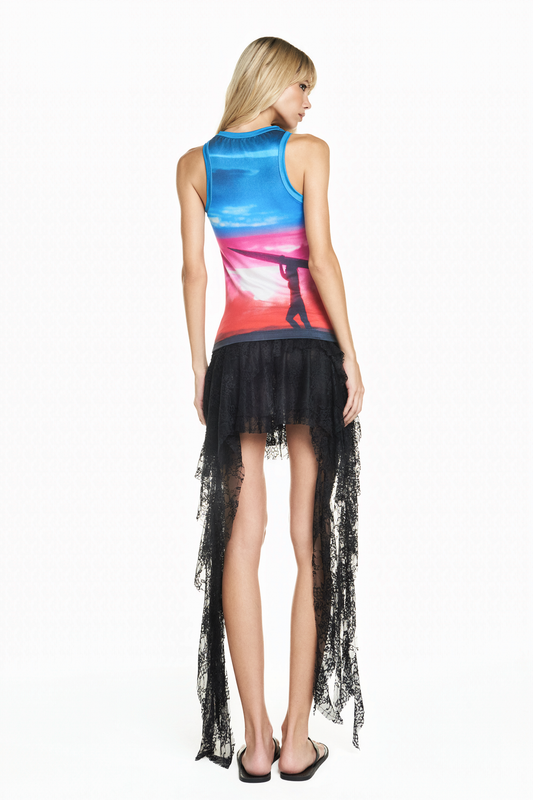 MINI SAIA PALA DRAPEADA BABABADOS ASSIMÉTRICOS RENDA PRETA
