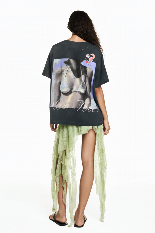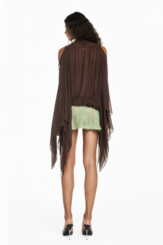 MINI SAIA PALA DRAPEADA BABADOS ASSIMÉTRICOS RENDA VERDE