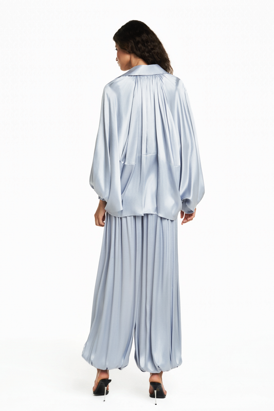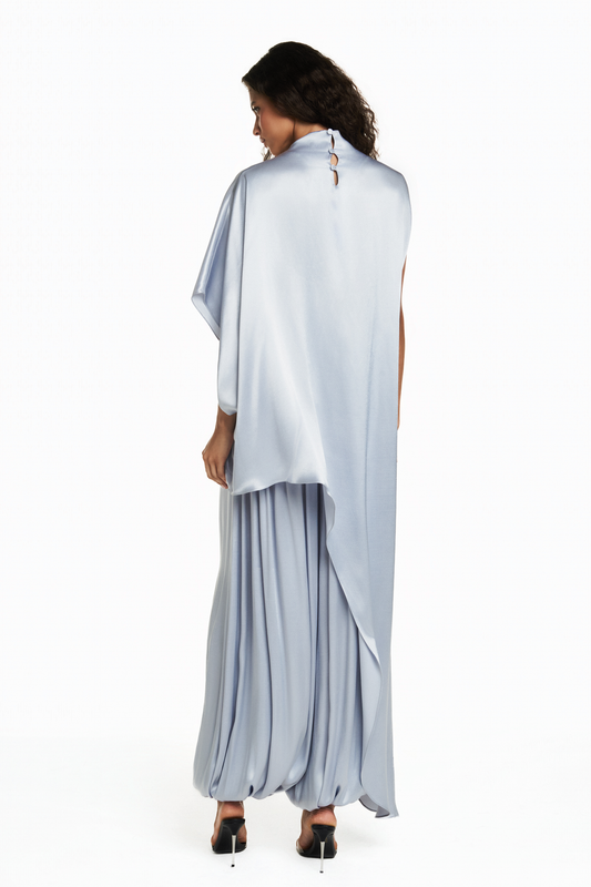 BLUSA KAFTAN ASSIMÉTRICA CETIM AZUL CLARO