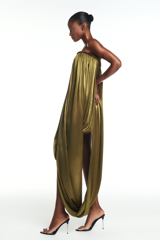 VESTIDO TOMARA QUE CAIA TORCIDO CETIM VERDE