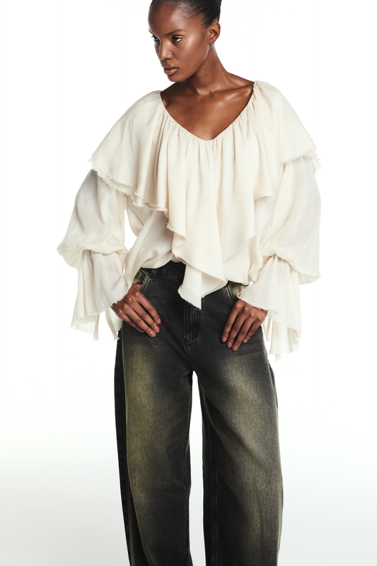CALÇA JEANS PERNA AMPLA DESTROYED