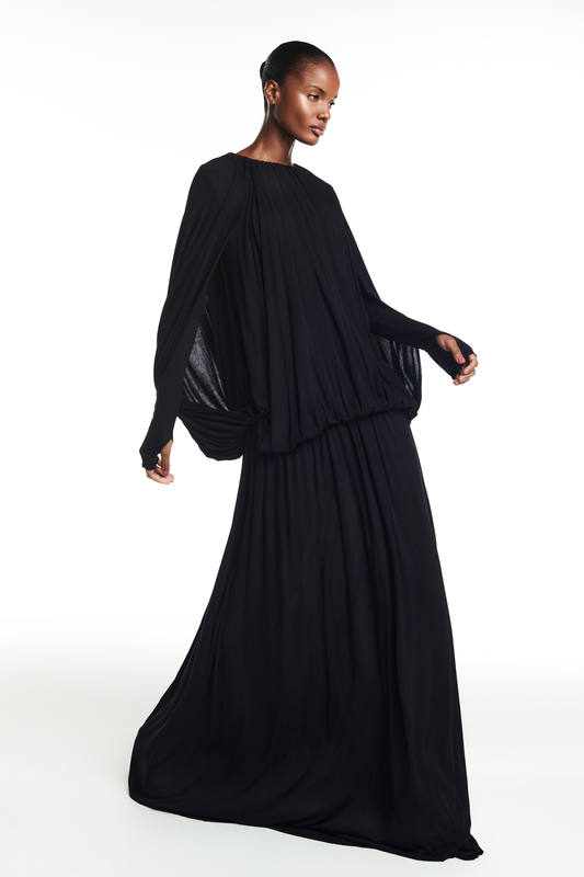 VESTIDO LONGO AMPLO CAPA MALHA PRETO