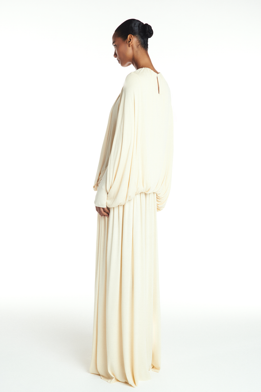 VESTIDO LONGO AMPLO CAPA MALHA MANTEIGA