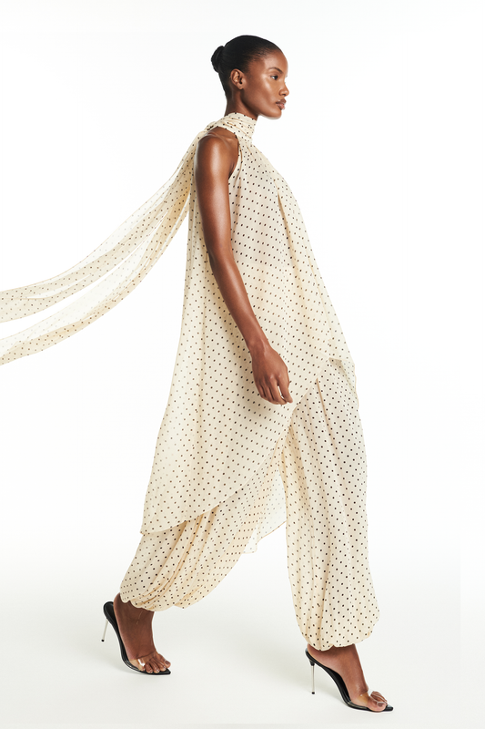 CALÇA ALADIM PALA DRAPEADA GEORGETE POÁ MANTEIGA