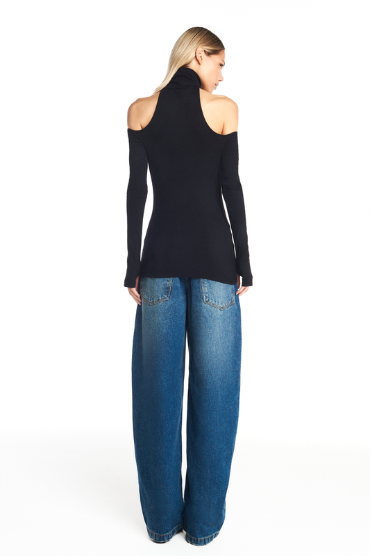 EsgotadoBLUSA DECOTE GOLA FALSA MALHA PRETA