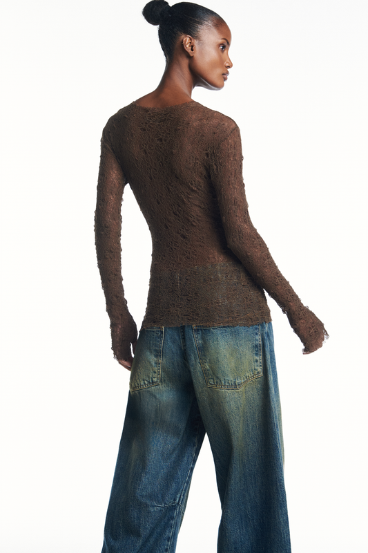 BLUSA MANGA LONGA METAIS TULE MARROM