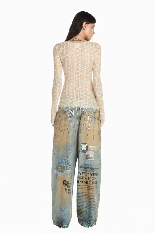 BLUSA MANGA LONGA RENDA BEGE HAPPILY EVER AFTER PEDRA