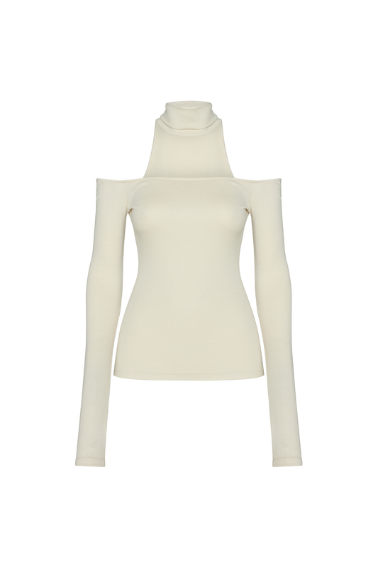 BLUSA DECOTE GOLA FALSA MALHA BEGE