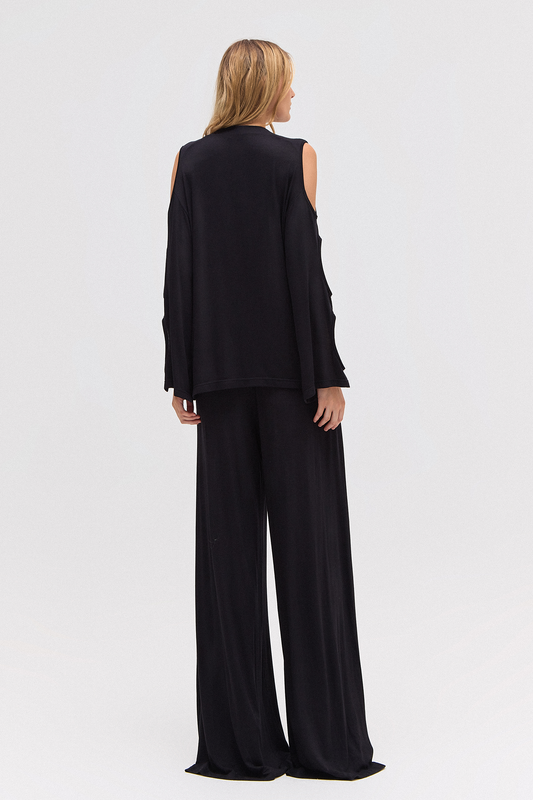 EsgotadoBLUSA AMPLA MANGA LONGA ABERTURAS BRAÇOS MALHA PRETA