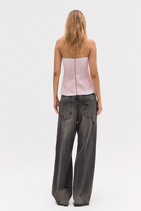 EsgotadoTOP CORSET CREPE PATOU RISCA DE GIZ ROSA