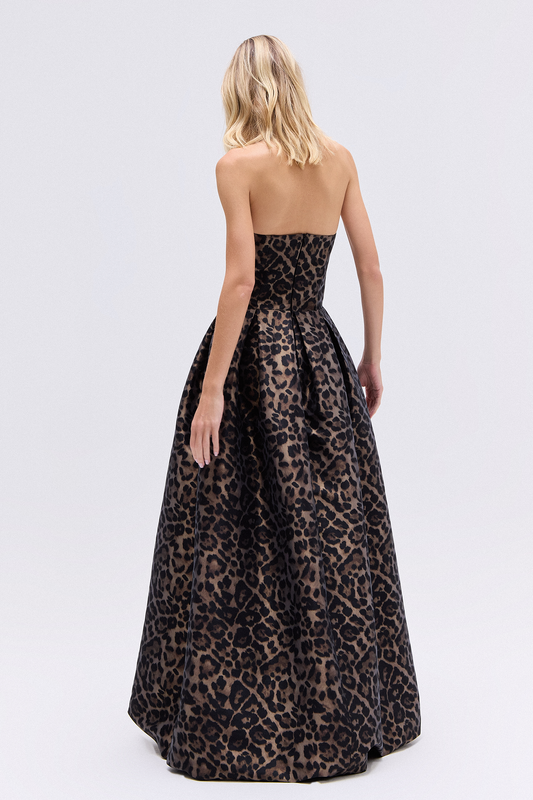 EsgotadoVESTIDO LONGO BALONÊ TOMARA QUE CAIA TAFETÁ ONÇA