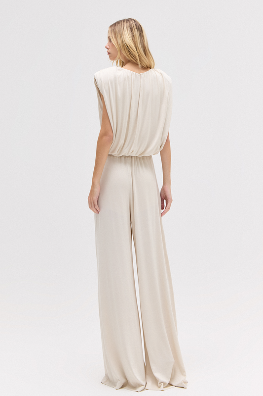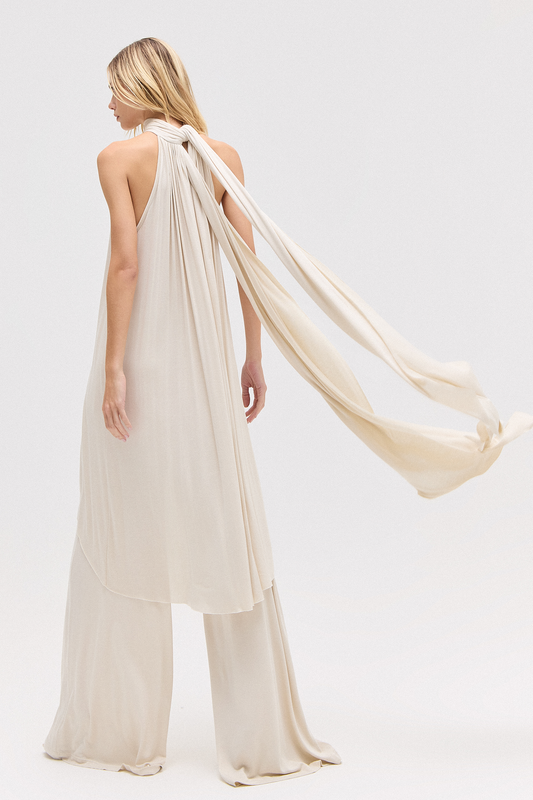 SaleBLUSA DRAPEADA SEM MANGA MALHA BEGE