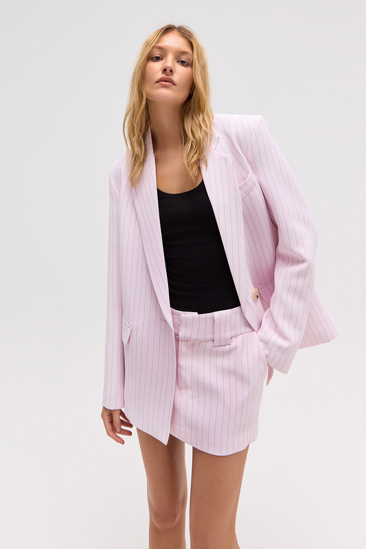 EsgotadoMINI SAIA ALFAIATARIA CREPE PATOU RISCA DE GIZ ROSA